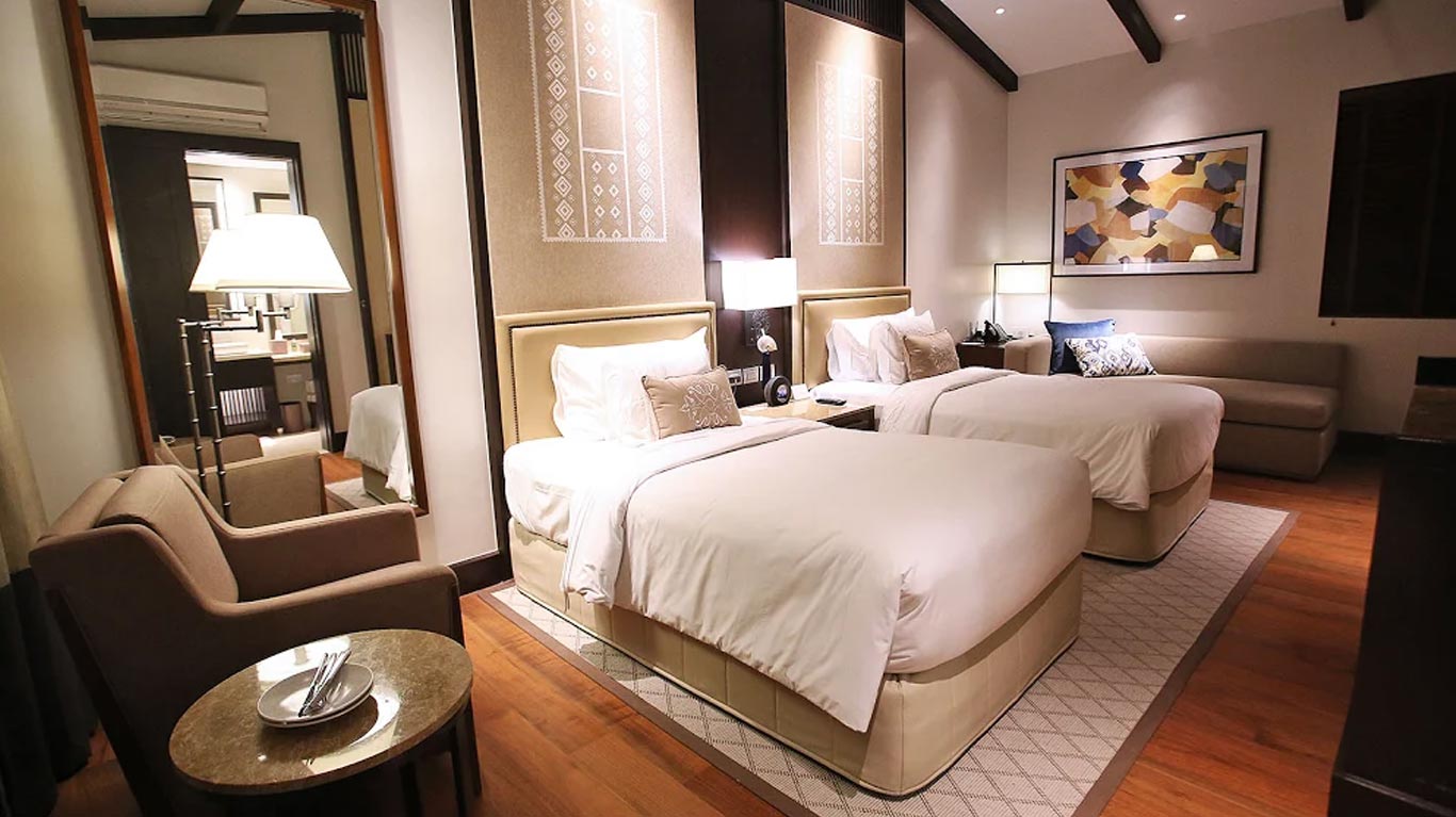 Our spacious and bright Junior Suites Twin are great for families on vacation or couples on a romantic getaway. Sink into comfort with its softly-lit lamps and the balcony view of the Tagaytay landscape.